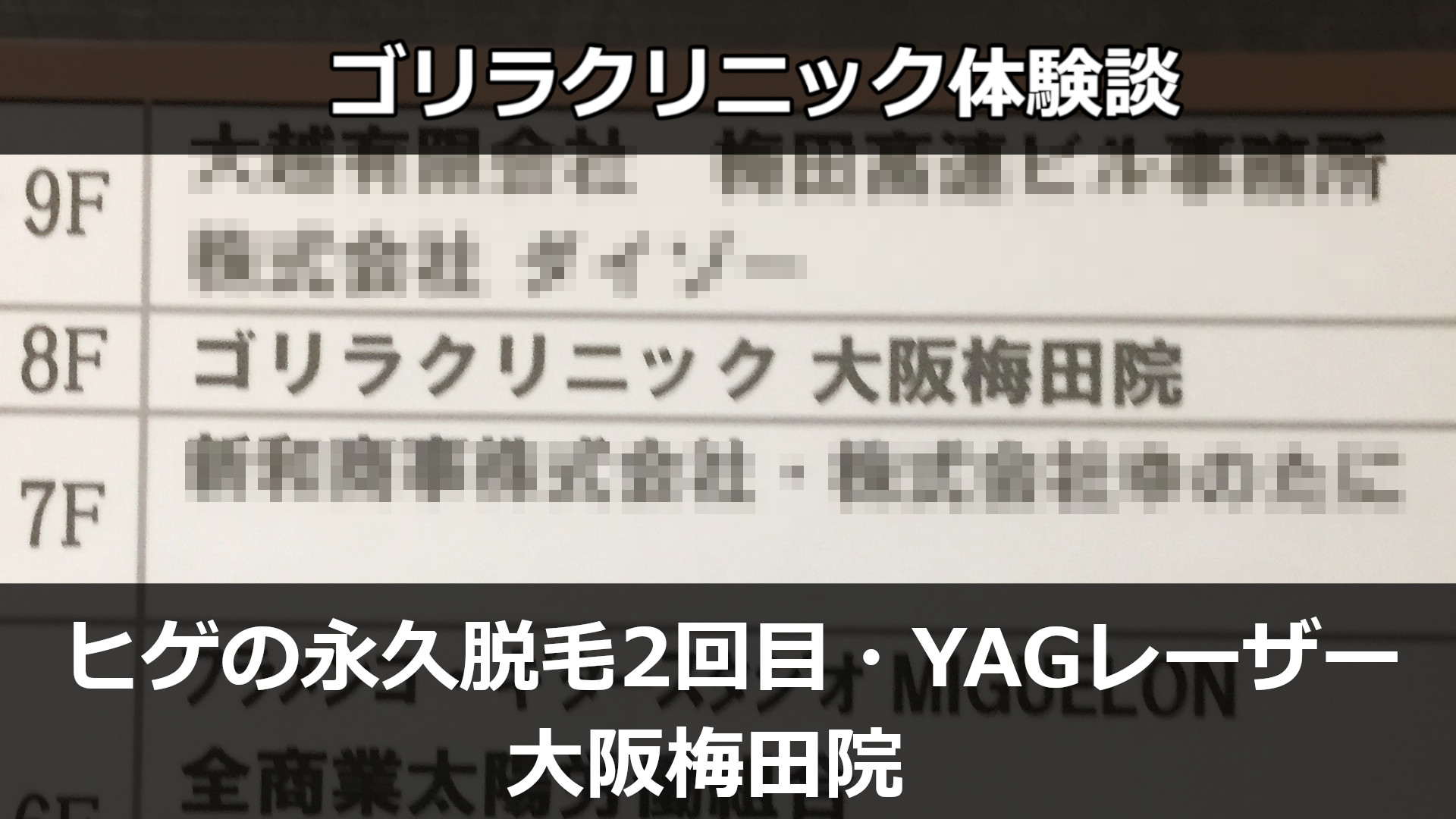 今回、ゴリラクリニック大阪梅田でヒゲ永久脱毛の2回目の施術に行ってきたので体験談を紹介します。