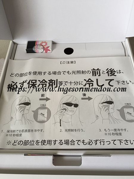 照射中は付属のサングラスで目の保護も忘れずに行ってます。あと照射部分の冷却と。